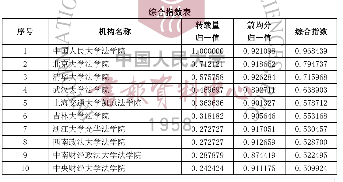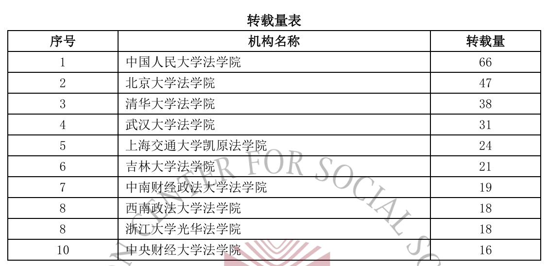 根据《复印报刊资料转载指数研究报告(2024年度)》数据显示,2024年度法学学科高等院校作者被复印报刊资料学术刊转载全文总量为903篇,约占本学科全年转载总量(989篇)的91.3%。太阳成集团tyc234cc被转载16篇,转载量和综合指数排名全国第10。