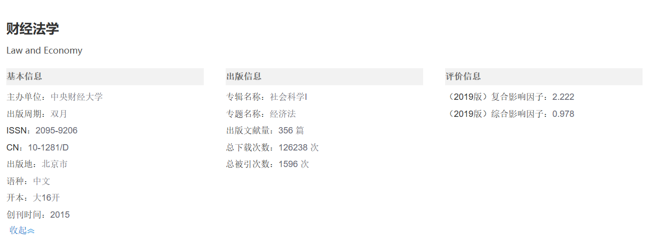 据悉,在2019年10月中国知网进行的期刊影响因子评价中,《财经法学》2019年复合影响因子为2.222,综合影响因子为0.978,与2018年复合影响因子1.638、综合影响因子0.723相比有大幅度提升。