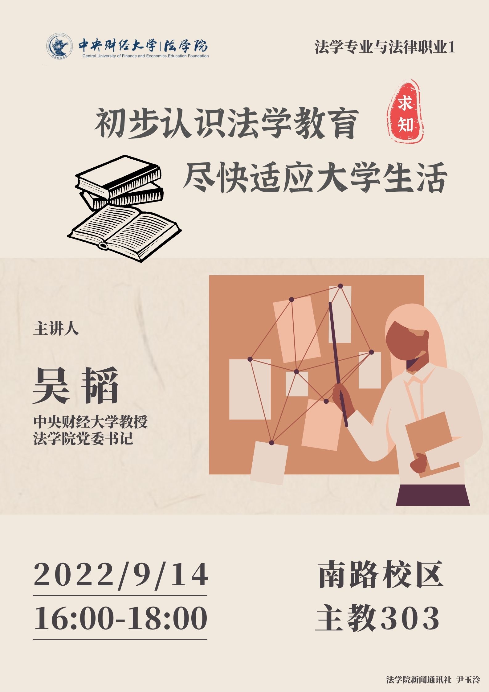 讲座|9.14|吴韬:初步认识法学教育 尽快适应老员工活