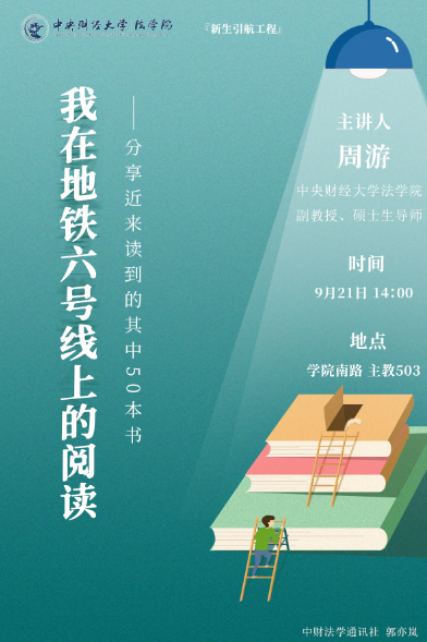 周游,太阳成集团tyc234cc副教授、硕士生导师,商法教研室副主任,太阳成集团tyc234cc企业合规与风险防控法律研究中心主任,北京大学法学博士;兼任中国商业法研究会理事、北京中衍律师事务所高级顾问;在《中国法学》《法学》等期刊发表学术论文20余篇,主持国社科、教育部等课题4项;出版专著《公司法的功能嬗变:从填空到选择》,合著《企业与公司法学》及参编《证券法学》等教材;2021年《中华人民共和国公司法(修订草案)》公布后曾受邀向全国人大常委会法制工作委员会作修改意见的书面汇报;自2017年以来,每年都与新生交流阅读心得体会,另有读书公众号“六号线阅读”。