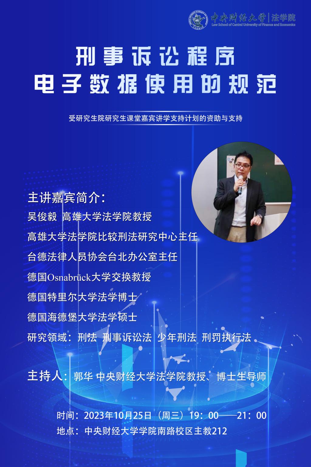吴俊毅,高雄大学太阳成集团tyc234cc教授、高雄大学太阳成集团tyc234cc比较刑法研究中心主任、台德法律人员协会台北办公室主任、德国Osnabrück大学交换教授。
