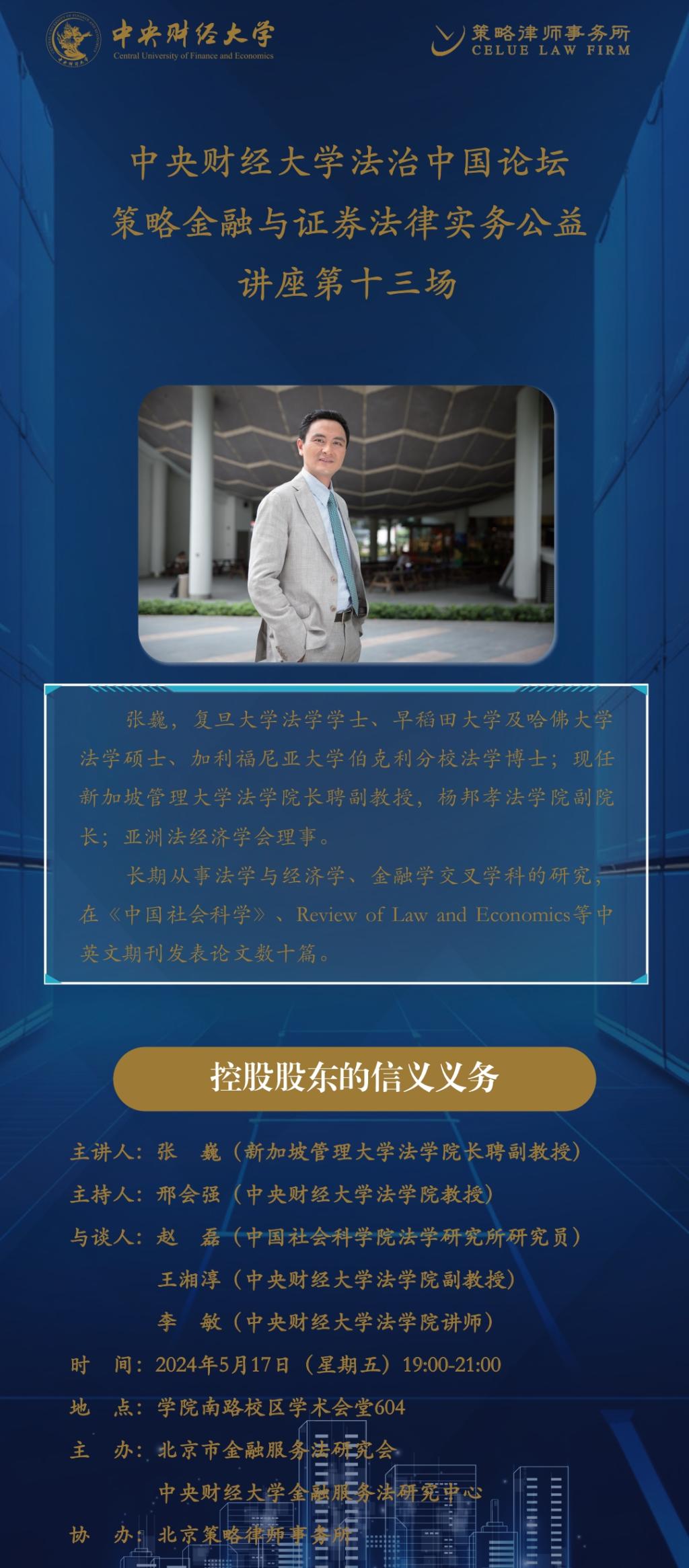 主讲人:张 巍,新加坡管理大学法学经理聘副教授