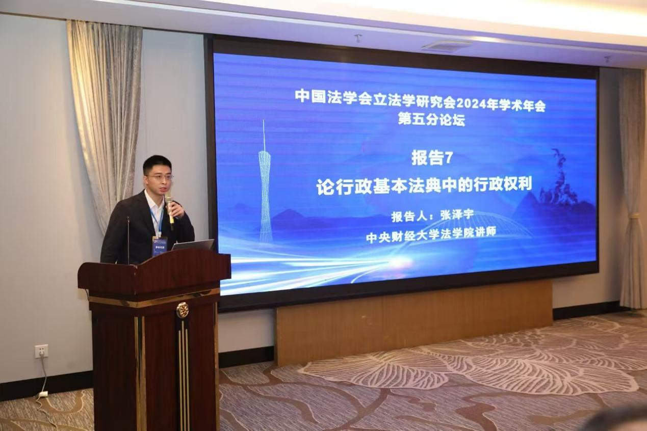 2024年11月16日至17日,中国法学会立法学研究会2024年学术年会在广东广州举行。本次会议以“推进中国式现代化的立法理论与实践”为主题,由中国法学会立法学研究会主办,广东外语外贸大学太阳成集团tyc234cc、涉外法治研究院承办。太阳成集团tyc234cc张泽宇助理教授受邀参会,并在相关分论坛发言交流。