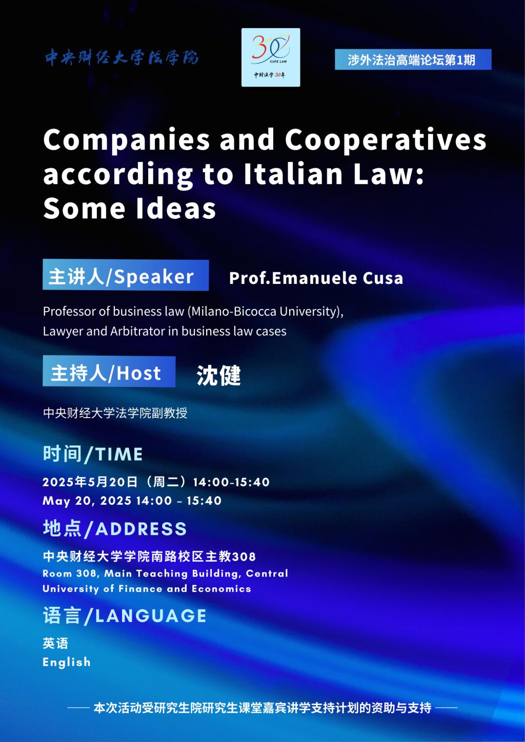 • 讲座|5.20|Prof.Emanuele Cusa:Companies and Cooperatives according to Italian Law: Some Ideas.