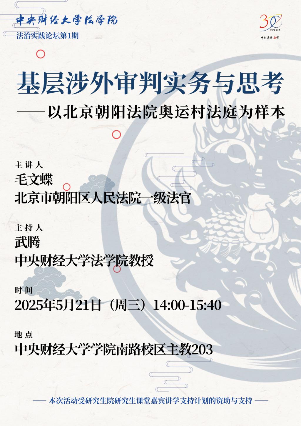 • 讲座|5.21|毛文蝶:基层涉外审判实务与思考——以北京朝阳法院奥运村法庭为样本