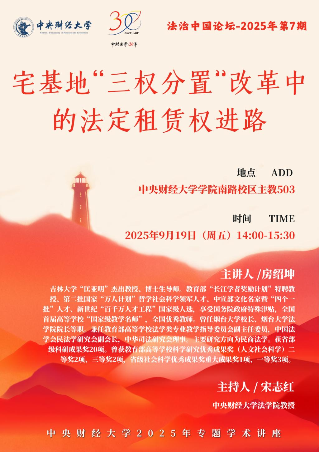 • 讲座|9.19|房绍坤:宅基地“三权分置”改革中的法定租赁权进路