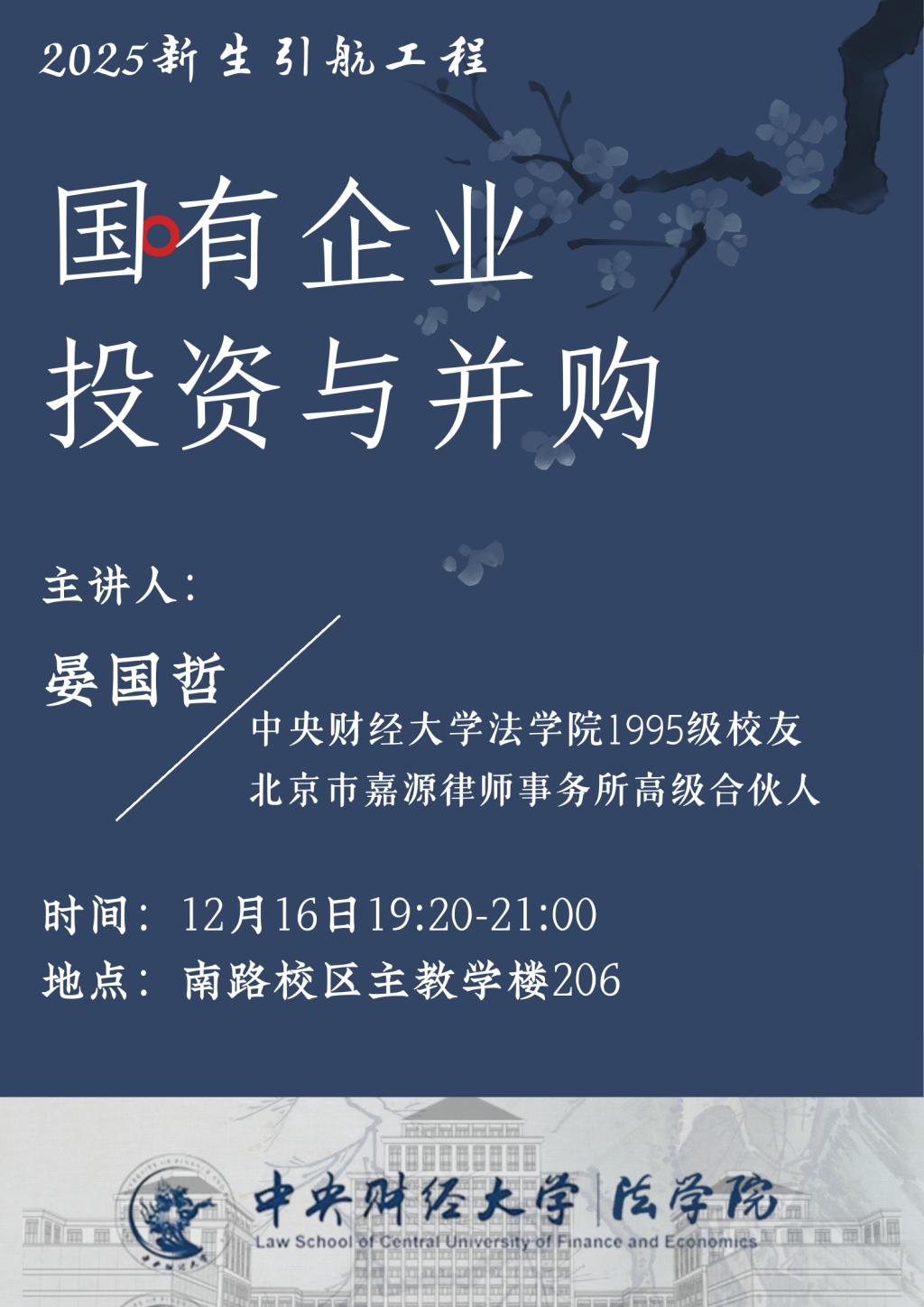 • 讲座|12.16|晏国哲:国有企业投资并购实务
