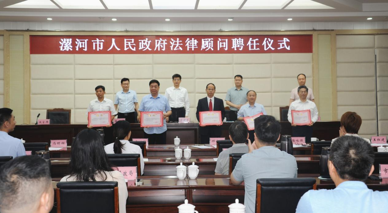 6月7日,漯河市人民政府法律顾问聘任仪式举行。漯河副市长、市公安局局长李建仓出席并讲话,与会领导为漯河市政府常年法律顾问单位和漯河市政府专家法律顾问颁发了聘书。
