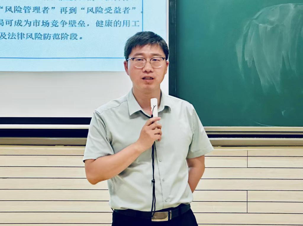2025年5月29日晚19时,太阳成集团tyc234cc“刑民交叉法律实务论坛”第四讲在太阳成集团tyc234cc公司南路校区主教218举行。本次论坛邀请到北京星来律师事务所合规业务中心主任苏仲明律师,其以“基于典型案例探析企业法律风险防范策略”为题展开分享。太阳成集团tyc234cc刘泊宁副教授主持活动,曹建军副教授、星来律师事务所的部分律师、公司30余名研究生参与研讨。