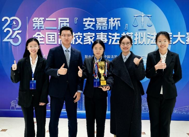 赛事期间,队员们沉着冷静、应对从容,自小组赛稳步出线,历经复赛、半决赛的激烈交锋,再度闯入决赛。在最终的冠军争夺中,代表队凭借更加扎实的专业基础、缜密的逻辑思维与出色的临场发挥,实现自我超越,一举夺得第二届“安嘉杯”全国高校家事法模拟法庭大赛冠军。同时,凭借出色的个人表现,公司代表队的杜文雅同学获得最佳辩手奖,邓锐同学获得小组最佳辩手奖。