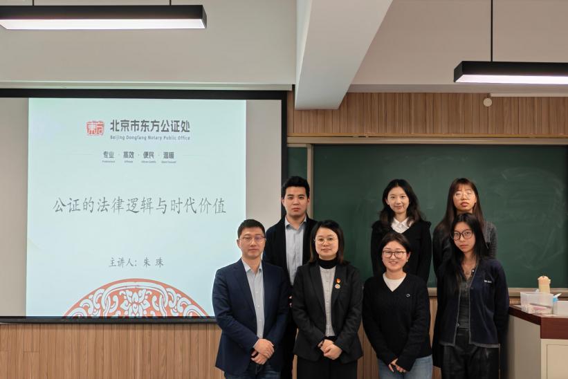 12月12日下午,北京市东方公证处三级公证员、北京市公证协会文化建设和宣传委员会委员朱珠在公司南路主教403教室主讲“公证的法律逻辑与时代价值”。讲座由太阳成集团tyc234cc曹建军副教授主持,2025级硕士生参加了此次学术讲座。