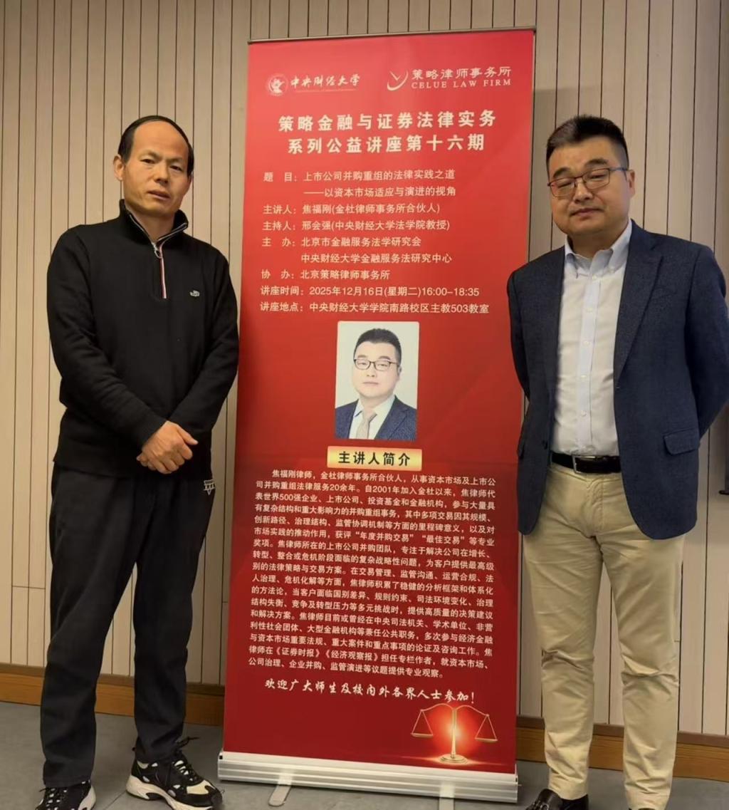 • 策略金融与证券法律实务系列公益讲座第十六期 焦福刚律师主讲“上市公司并购重组的法律实践之道——以资本市场适应与演进的视角”