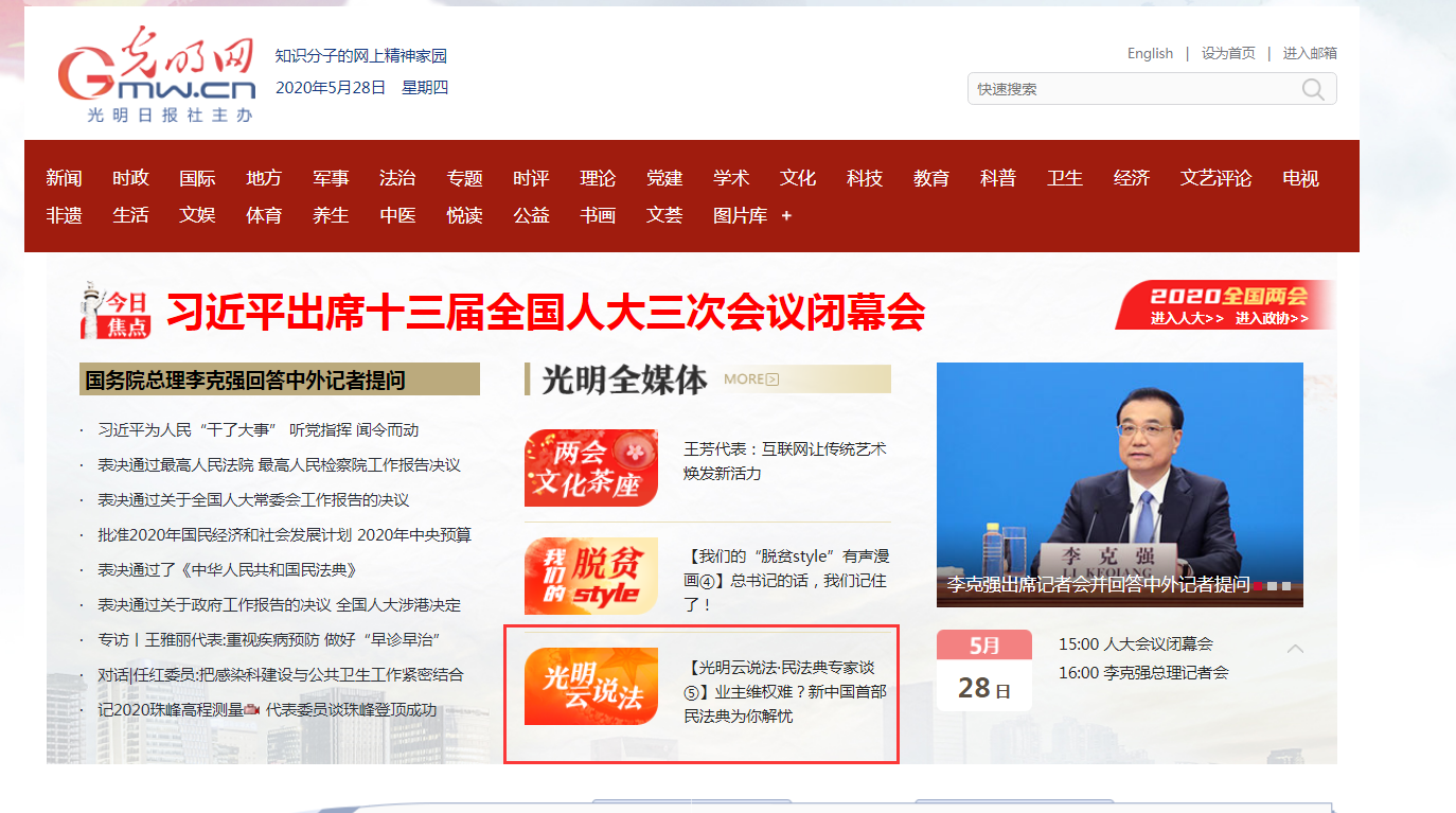 5月28日,十三届全国人大三次会议表决通过了《中华人民共和国民法典》。这部法律自2021年1月1日起施行。