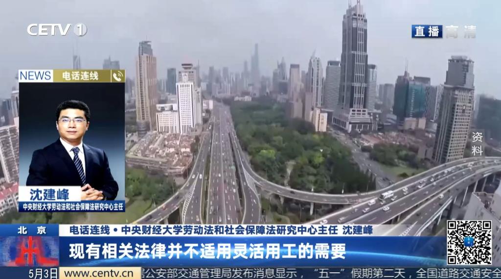 2021年5月3日,公司沈建峰教授接受中国教育电视台连线采访,就灵活就业人员劳动权益和社会保险权益保护在现行法律框架下存在的难点及现行法的发展方向发表观点。