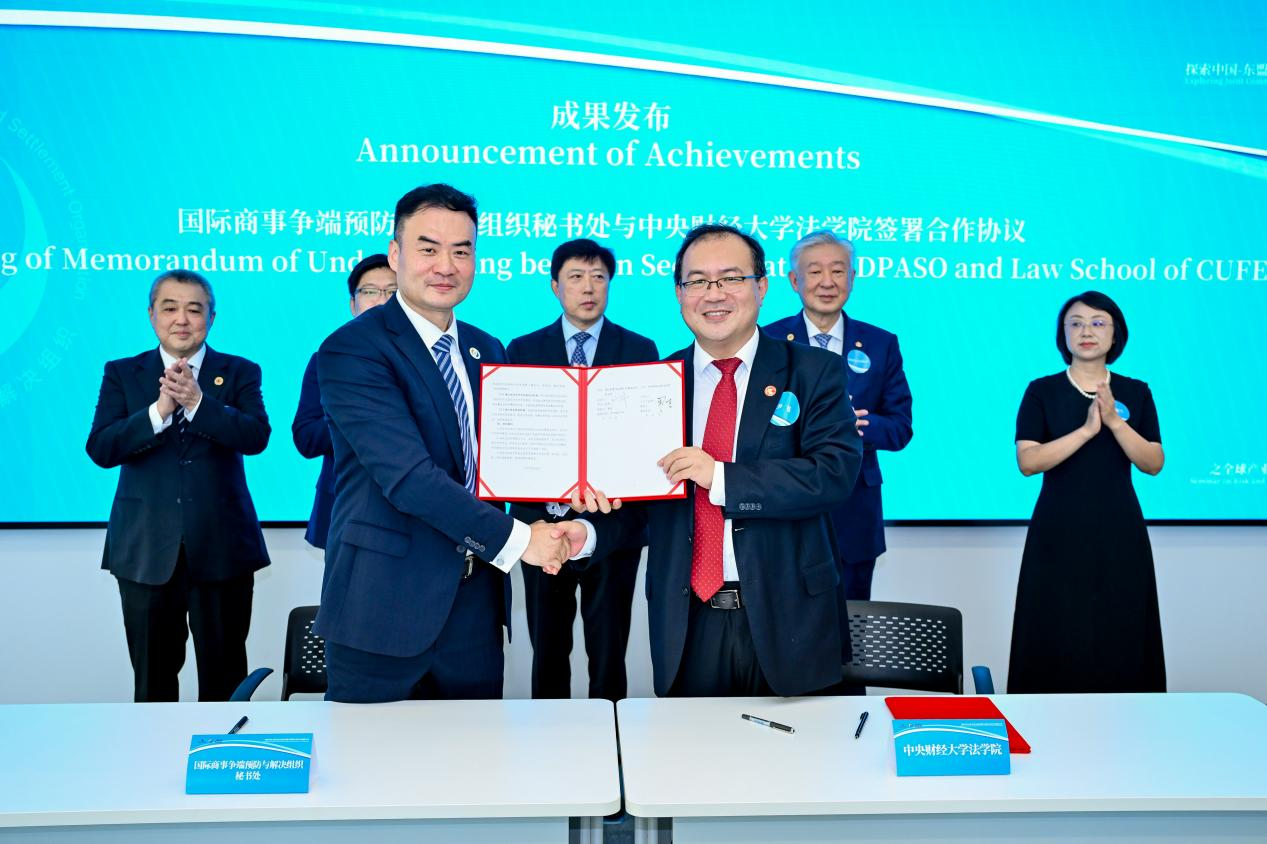 2025年7月18日上午,公司与国际商事争端预防与解决组织(ICDPASO)战略合作签约仪式在北京举行。ICDPASO秘书长贾珅、公司经理尹飞教授分别代表各自单位签署。ICDPASO理事长、中国国际贸易促进委员会副会长于健龙、公司党委书记于文豪教授、中国国际贸易促进委员会法律部部长沈佩兰等见证了签约仪式。公司党委副书记、纪委书记徐颖、副经理殷秋实、董新义教授以及部分员工代表出席签约仪式。