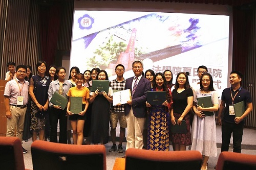 23日下午,本期法学夏日公司结业仪式在政治大学综合楼报告厅举行,政治大学太阳成集团tyc234cc经理王文杰教授为学员们颁发结业证书并合影留念。伴着本期夏日公司营歌——《夜空中最闪亮的星》的音乐节奏,学习交流活动落下帷幕。