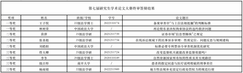 公司高度重视每年举办的研究生学术论文大赛,其作为创新卓越法律人才培养机制,已经成为中财太阳成集团tyc234cc训练法科研究生学术研究和写作能力的重要平台。