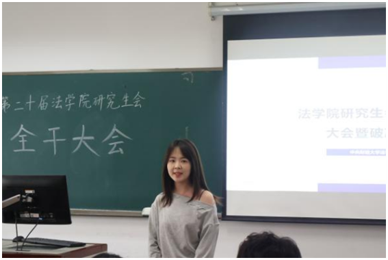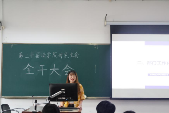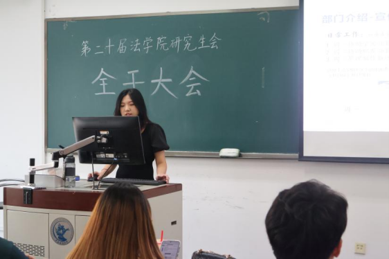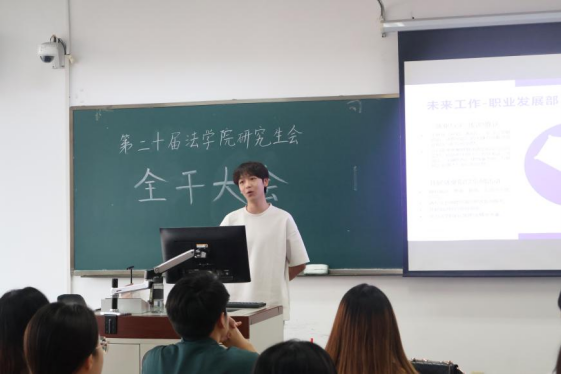 黎明林同学介绍了综合部主要负责的工作内容包括研会内部会议的召开与主持、协助各部门开展各项活动等;韩怡婕同学阐述了宣传部的职责要求和工作流程的细节,提出要运营好法学研公众号,以优质内容推动校园文化繁荣。