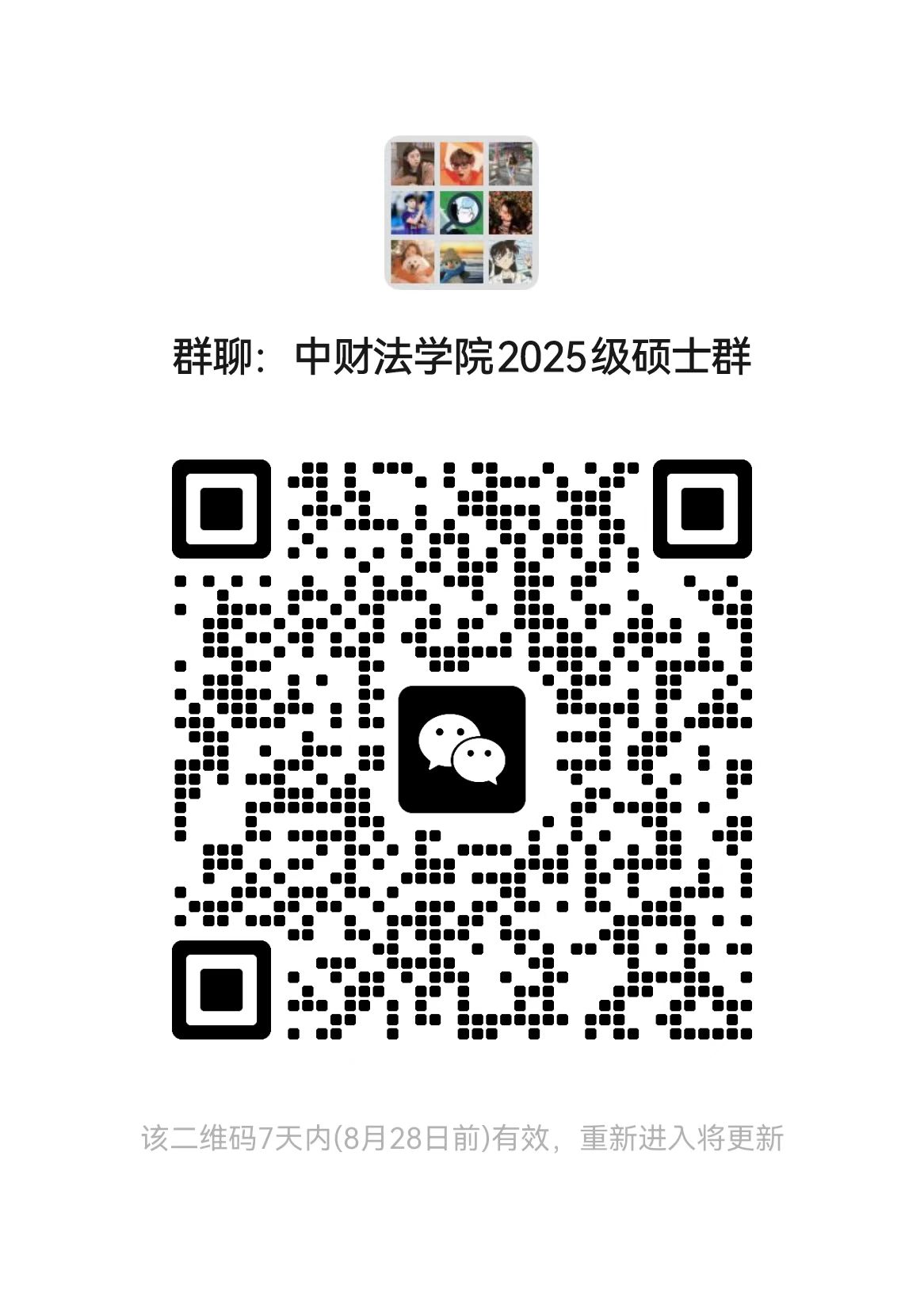 为便于2025级硕士新生工作的顺利开展,特建立“中财2025级硕士生群”,请大家及时扫描下方二维码实名制入群!