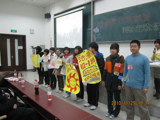主持人10级杨超、史梁同学首先介绍了本届“绿色、科技、人文”主题教育活动的背景并宣布了本次交流会流程,10级法学1班以“微笑慢递散播温暖,人文精神舞动校园”为主题展示了该支部“微笑慢递店”活动的活动内容和收获,并现场唱起了活动中的主题曲。10级法学2班则以“共创和谐绿地,建设世界城市”为主题,展示了他们制定《绿色条例》的过程和成果,可谓专业而不失趣味。10级法学3班选取“科技”点,以“我眼中的北京,模拟世博之北京馆”为活动形式,吸引了大家的眼球。大二的团支部也不甘落后, 09法1的“搭乘人文地铁,建设世界城市”活动,09法2的“绿色典当,典当低碳”活动,以及09法3以人文为主题的“京剧文化之旅”活动,无不传递着团员们对首都北京的憧憬与畅想。