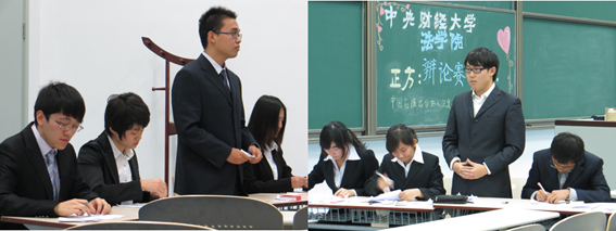 比赛开始继正方慷慨激昂、反方充满理性色彩的自我介绍后,比赛进入开篇立论环节。正方一辩从三点论证了中国应该出台好人法案,娓娓道来;反方一辩也不逊色,分别从立法、司法、行法三点稳稳立论。在随后的対辩环节中,双方更是争锋相对,步步紧逼,现场气氛迅速升温,达到白热化阶段。比赛继续进行,进入自由辩论环节。正方围绕法律的优势作用,助人为乐做好人等方面进行攻击,辩手们精辟的措辞,犀利的语言,展现出中财法学人法跃乾坤的气势。反方辩手也毫不示弱,他们通过法律的利弊对比,一切从实际国情出发等角度展开,旁征博引,极力反击。最后比赛进入总结陈词环节,双方四辩针对对手逻辑上的漏洞逐一回击,并做出最后的精彩总结。正反双方辩手清晰的逻辑思路和巧妙的陈词给观众留下了深刻印象。接着,三位评委老师对本次辩论赛做了精彩的点评,并称赞本次比赛双方各有优势,旗鼓相当,堪称精彩。同时也分别指出了双方的优点和不足,并表示期待大家的进步。研究生代表队以相对完美的表现获得最终的胜利,同时本科生反方三辩党弘毅同学摘得最佳辩手的称号。