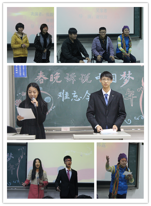 11月15日晚6点30分,公司法学2012级1班和2013级1班在沙河主教106教室联合举行“薪火相传中华魂,青春践行中国梦”主题教育系列活动之“春晚诉说中国梦,难忘今宵三十年”重温春晚记忆晚会。公司团总支员工会主席黄盛秦及其他成员也到场参与了本次活动。