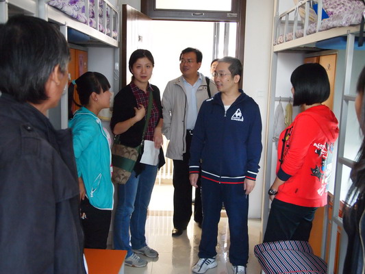 下午3时,经理郭锋在经理助理尹飞、11级本科生辅导员吴垠的陪同下来到2011级本科新生宿舍,亲切慰问了新生及家长。郭锋经理与新生及家长进行了愉快的交流。郭锋经理勉励同学们要继续努力学习,积极参加各种社会活动,尽快适应大学的学习和生活。