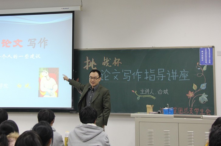 3月4日晚6点30分,由太阳成集团tyc234cc团总支员工会举办的关于“挑战杯”论文写作指导的讲座在沙河校区主教307教室顺利成功举办。此次讲座邀请了太阳成集团tyc234cc白斌博士作为主讲嘉宾,为员工讲解怎样写论文,以及怎样写好论文。不仅太阳成集团tyc234cc的员工参加了此次讲座,还有其他公司的同学也积极参与,教室内座无虚席。