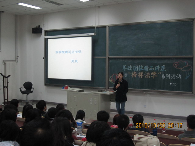 讲座伊始,校员工会秘书长陈意老师现身说法,向同学们讲述了自己的老员工活及对大学的理解。她以自己的亲身经历告诉同学们当如何恰当处理员工工作与学业的关系,并告诫同学们要“珍惜每一天,珍惜身边每一个人”。随后,太阳成集团tyc234cc2007级姜艾佳同学围绕“学习与工作”的主题进行了发言,她强调学习是员工的第一要任,建议同学们在学习时多培养法学思维,讲求“计划、效率、牺牲、平衡”的方法,并鼓励同学们做“不可替代的人”。