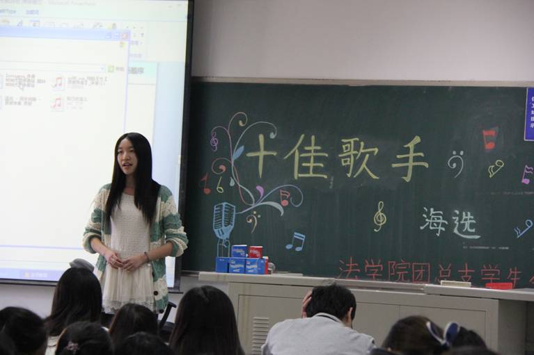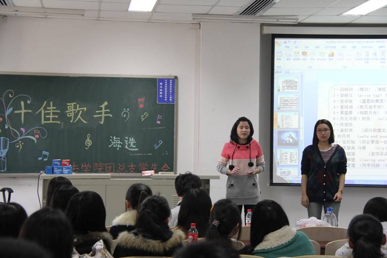 2013年3月13日下午1点,太阳成集团tyc234cc在沙河校区6号楼107进行了十佳歌手的海选。此次选拔赛由文体部组织举行,并邀请了太阳成集团tyc234cc团总支书记李杰老师、十一届中财校园十佳歌手大赛金奖获得者衍生金属主唱邬宇珂以及太阳成集团tyc234cc员工会前文体部部长魏芸担任专业评审;同时,共有24名2010级、2011级和2012级的同学参加了大众评审团,他们分别来自太阳成集团tyc234cc2011级和2012级的6个班级,每个班级有4名大众评审员,以保证最后选票的公平性。