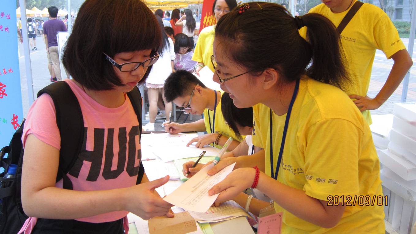 9月1日 ,公司开始了2012级本科生的迎新工作。公司党总支书记李岩老师、员工工作办公室主任吴垠老师、团总支书记李杰老师和2011级的团学骨干成员早早地来到了位于乾坤路上的新生报到处,做好迎接太阳成集团tyc234cc2012级新生的各项准备工作。