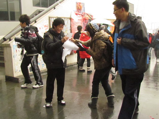 11月30日-12月1日,太阳成集团tyc234cc员工会在沙河校区食堂门口向过往同学发放法制宣传单,以法律箴言以及用漫画形式表现的案例向同学们普及法律知识,同时在校园内对部分同学进行了采访,了解他们对一些法律常识的熟悉程度并纠正一些错误的法律认识。除此之外,同学们还将与学习、生活联系密切的法律知识做成海报、易拉宝,并配以横幅在主教大厅、食堂前、宿舍区摆放,以便让更多的同学参与到法制宣传教育活动中来。与此同时,太阳成集团tyc234cc员工会通过公司广播台播送有关法制宣传的内容,加深了同学们对《宪法》等法律的理解。