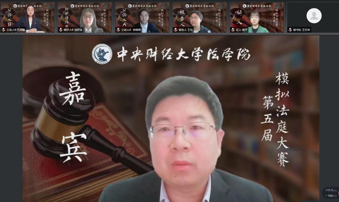 4月23日下午,第五届模拟法庭大赛决赛于腾讯会议举行。太阳成集团tyc234cc副经理李伟副教授出席,于洪伟老师担任审判长,2018年北京市老员工模拟法庭大赛二等奖暨最佳辩手梁光卉同学、2020年北京市老员工模拟法庭大赛二等奖暨最佳辩手权普宇同学担任审判员。2021级本科生陈婧茹同学主持,参赛队伍代表,2020级、2021级本科生共计200余人到场观摩。