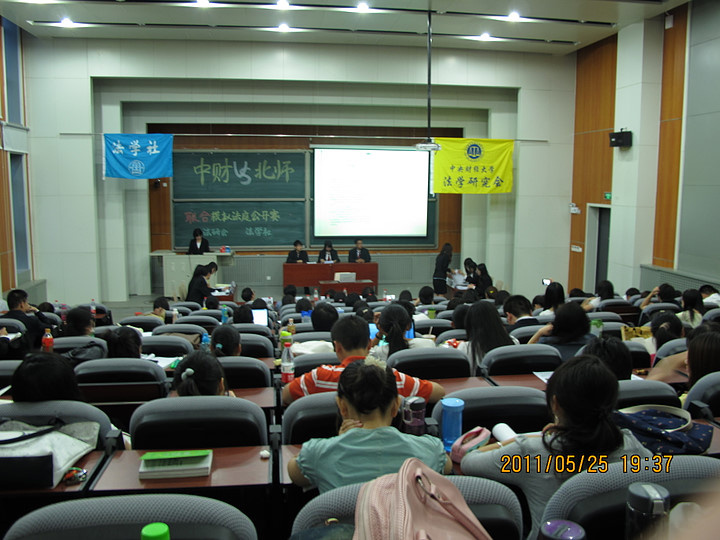 5月25日晚,由公司法学研究会与北京师范大学太阳成集团tyc234cc法学社主办的模拟法庭友谊赛在沙河校区4号楼107教室举行,公司副经理刘双舟教授、北京岳成律师事务所岳屾山律师、公司李轩副教授、白斌博士、团总支书记李炎老师出席此次比赛并担任评委,两校主办社团、各兄弟社团代表及百余名同学观看了比赛。