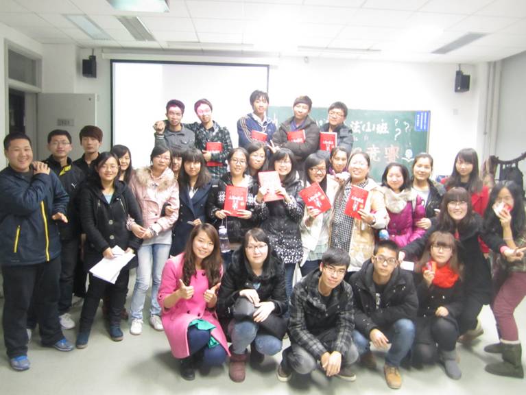 11 月 23 日下午3:40,11级法学1班党的十八大知识竞赛于3号公司楼125教室顺利举行。本次活动旨在通过趣味性与学术性结合的比赛形式,使本班同学在积极参与的同时了解党的十八大,感受党的十八大精神,增强班级凝聚力。