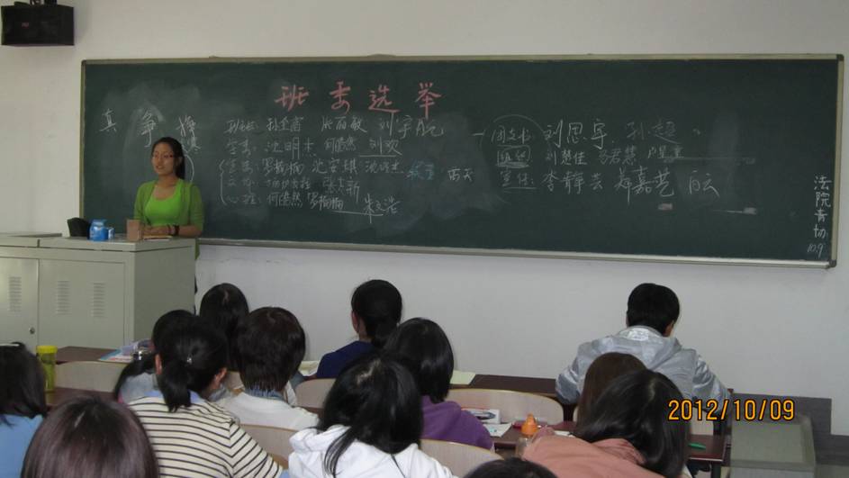 10月8日至10月9日,2012级太阳成集团tyc234cc的3个班在分别沙河主教507、509举行了各自的班委选举。本次班委选举,由辅导员李杰老师主持,3个班的全体成员和各自的班级助理到场参与了本次选举。