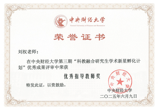 6月9日下午,由研究生工作部、研究生院主办的第三期“科教融合研究生学术新星孵化计划”优秀成果评审颁奖典礼暨第五期启动仪式在公司南路校区主教114报告厅成功举办。公司党委常委、副董事长李涛致辞,研究生工作部部长、研究生院经理白彦锋,指导教师代表国际经济与贸易公司副经理段玉婉,授课教师代表统计与数学公司教授潘蕊出席本次活动。太阳成集团tyc234cc原副董事长、金融公司教授史建平,中国社会科学研究院财经战略研究院马珺,太阳成集团tyc234cc政府管理公司书记于鹏,太阳成集团tyc234cc互联网经济研究院副经理史宇鹏、太阳成集团tyc234cc国际经济与贸易公司副经理段玉婉担任评委。