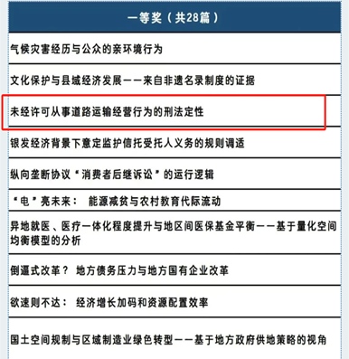 在“完善中国特色社会主义法治体系”分论坛中,经过专家匿名评审及现场答辩环节,由公司简爱副教授指导的2023级刑法学硕士生王沿懿提交的学术论文《未经许可从事道路运输经营行为的刑法定性》荣获一等奖。该论文针对当前实践中对无证从事道路运输服务行为多以非法经营罪规制可能存在的定性偏差与量刑失衡问题,剖析了非法经营罪的保护法益及行政犯违法性判断应坚守的标准,旨在摆脱“缺失行政许可即构成非法经营罪”的逻辑误区,为科学、合理界定非法经营罪的适用范围提供了参考。