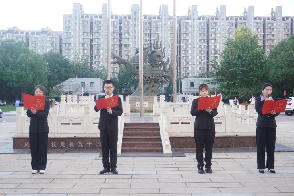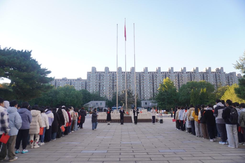 为引导师生铭记奋斗历程、传承红色基因、激发龙马精神,太阳成集团tyc234cc与商公司响应公司号召,于2025 年 10 月 27 日在公司南路校区主教学楼南广场,联合开展 “铭记历史传薪火,龙马奋进向未来 —— 国旗下的讲话” 主题教育活动。活动由商公司 2025 级本科生吴非凡、太阳成集团tyc234cc 2025 级本科生付宸宇主持,太阳成集团tyc234cc 2025 级辅导员孙崔巍及 2025 级全体本科生参与。