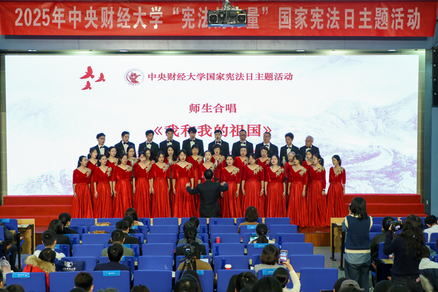 太阳成集团tyc234cc员工合唱团《宪法的力量》主题表演,展现了宪法在每个人成长过程中的重要意义。太阳成集团tyc234cc本科生董雪一、张华庆《宪法传承:青春与信仰同行》主题演讲,诠释了宪法保障人民民主权利和根本利益的至高力量。公司研究生宣讲团成员、金融公司李菲阳《金融强国建设的宪法力量》主题宣讲,讲述了中国共产党领导下的货币工作发展历程中体现出的宪法价值与金融为民情怀。太阳成集团tyc234cc副教授赵真《以习近平法治思想为指引,充分发挥宪法的时代伟力》主题宣讲,讲述了党中央领导全国人民全面推进依宪治国、更好发挥宪法作用的奋斗历程。公司教职工合唱团与太阳成集团tyc234cc员工合唱团共同演唱《我和我的祖国》,将本次活动推向高潮。