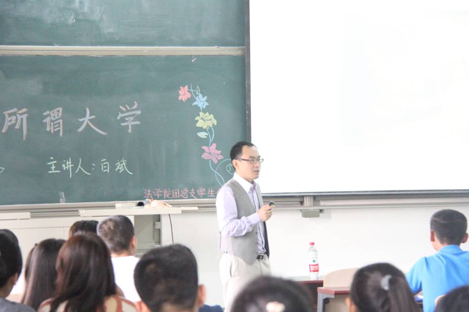 9月9日下午4点10分,由太阳成集团tyc234cc团总支员工会主办的“我的大学”系列讲座在沙河主教212教室开讲。担任第一讲主讲人的为太阳成集团tyc234cc白斌博士,太阳成集团tyc234cc团总支书记李岩老师,辅导员李杰老师以及2013级新生们参加本次讲座。白斌博士以10个关键词开始了他的“所谓大学”的演讲。