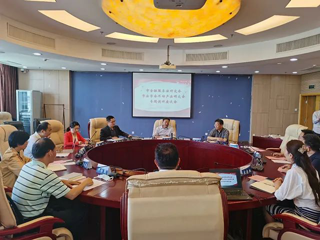 尹飞经理首先介绍了公司整体发展状况、人才培养特色以及法学学科服务国家法治建设、服务首都发展所作的贡献,特别介绍了公司在数字经济法治方面的研究成果。随后,尹飞教授、曾筱清教授和邢会强教授分别介绍了北京市法学会不动产法研究会和北京市金融服务法学研究会在学术研究、社会服务等方面取得的成效,同时也提出了发展中存在的问题和困难。公司宋志红教授、陈飞副教授及刘权副教授就市法学会及研究会如何服务北京“两区建设”、如何服务数字经济发展、如何推动研究会高质量发展等主题积极建言献策,与会人员进行了热烈而充分的讨论。