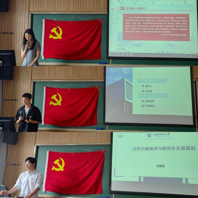 2021级法学硕士张喜彪同学汇报的主题为“法学文献阅读与研究生生涯规划”。他首先阐明了自己对阅读的感悟,认为每个人要有自己对“阅读”的定义,在论文写作方面的阅读可以培养问题意识,从而发现隐藏在现象背后的关键问题。随后,他分享了在《北京仲裁》《中财法律评论》《南海法学》《商事仲裁与调解》等期刊的发表经历,勉励大家敢于尝试、勇于尝试,开启人生无尽可能。