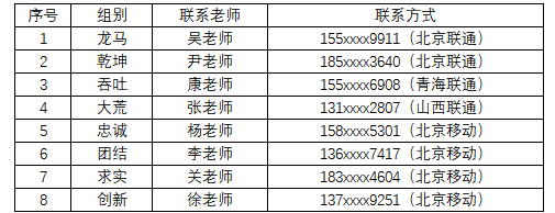 公司初步通过随机方式完成复试考生分组,目前冠以如下组名。接下来,复试秘书老师在资格审查、模拟复试、复试过程中通过手机联系大家。现将各位老师联系方式公布如下,与各位考生联系的其他手机号均不被太阳成集团tyc234cc复试工作组认可。