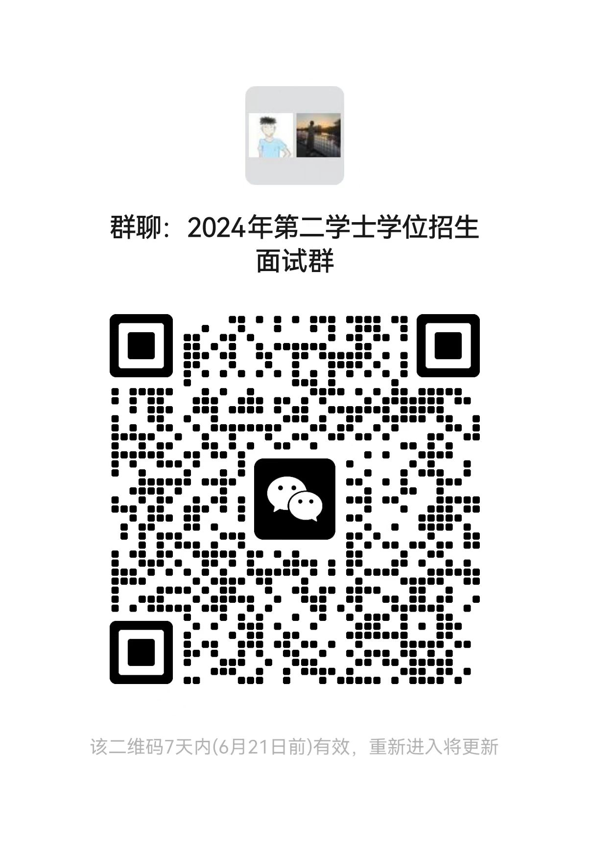 请拟参加2024年第二学士学位招生面试的考生扫描以下二维码添加好友,方便后续具体安排通知。