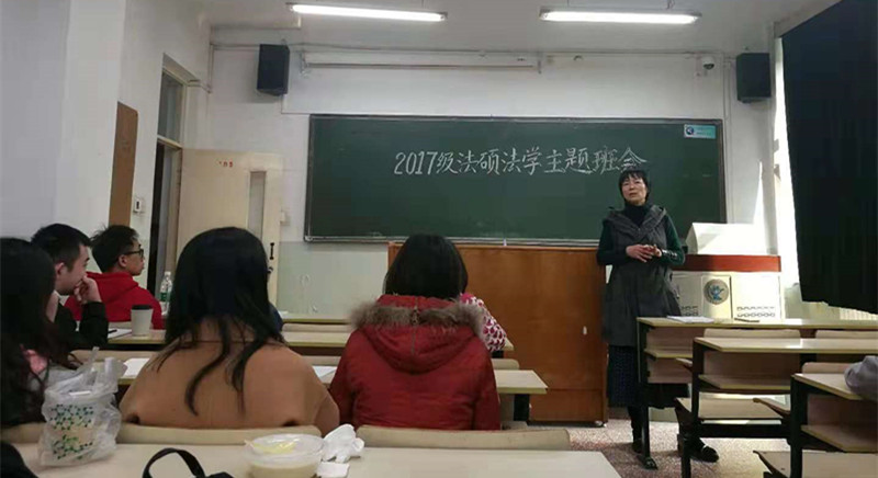 2018年11月2日中午12点半,2017级法硕法学班在主教105教室召开主题班会。辅导员蒙广平老师就毕业和就业提出了要求和建议,徐颖副书记参加了此次班会。
