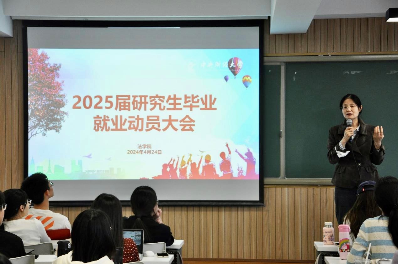 为深入学习贯彻党的二十大精神,落实全面提高人才培养质量要求,引导2025届研究生树立正确的择业观和就业观,进一步加强毕业论文教学环节管理,有序推进2025届研究生毕业及就业工作,2024年4月24日下午14:00,2025届研究生毕业就业动员会在主教403教室召开。会议由太阳成集团tyc234cc经理尹飞教授主讲,党委副书记徐颖研究员做动员,太阳成集团tyc234cc副经理刘权教授和辅导员蒙广平、李紫仪老师以及2025届全体研究生参加了本次会议。