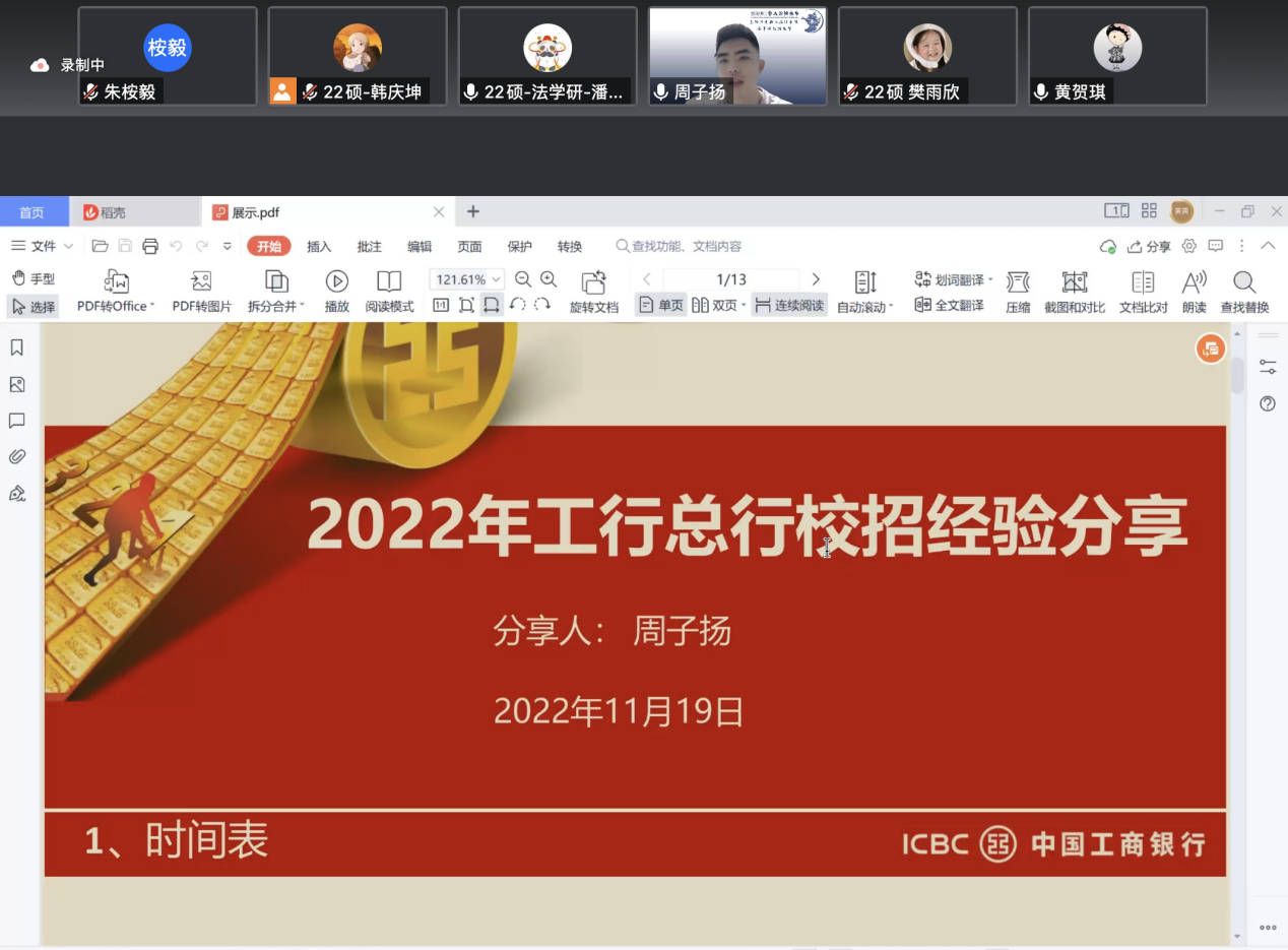 周子扬学长是2022届法律硕士(法学)专业毕业生,现就职于中国工商银行总行,学长主要从备考安排、笔面试经验、职业发展三个方面进行经验分享。