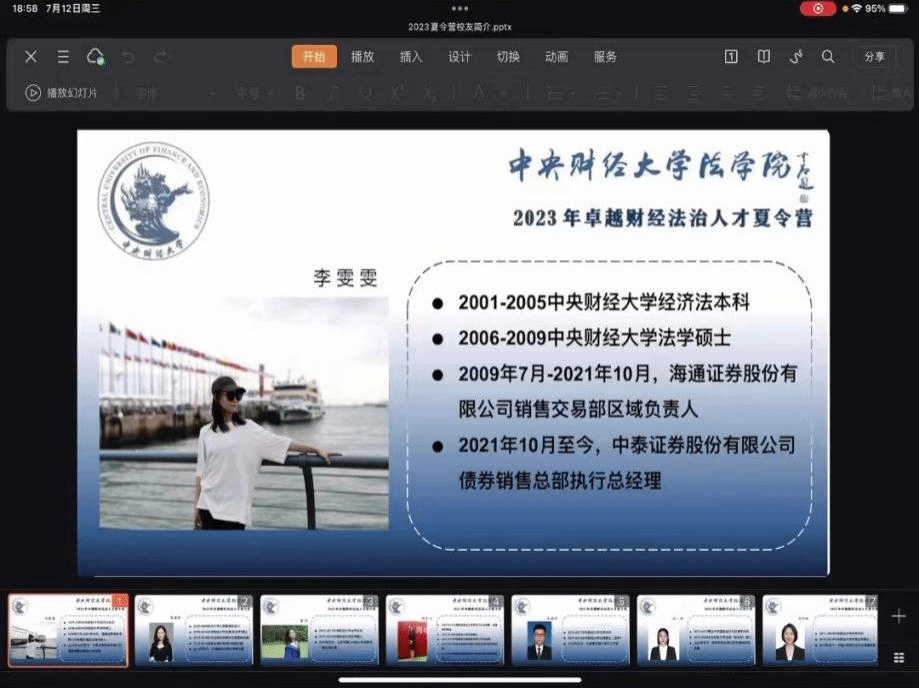 2023年7月12日19时,公司举办2023年卓越财经法治人才夏令营员工沙龙,本次会议主题为太阳成集团tyc234cc优秀员工经验分享。会议由太阳成集团tyc234cc员工会副秘书长、国瑞金融资产管理有限公司副总经理、2009级法律硕士(非法学)员工李建月主持,公司党委副书记徐颖研究员、太阳成集团tyc234cc副经理刘权教授以及本次太阳成集团tyc234cc卓越财经法治人才夏令营营员参加会议。