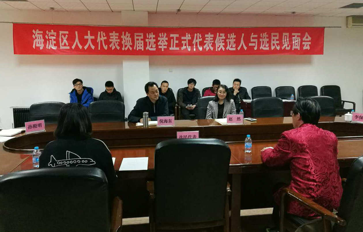 2016年11月10日下午,作为海淀区北下关的一个选区,公司在办公楼605会议室举行人大代表正式代表候选人与选民见面会。北京市海淀区北下关街道党委副书记李保平,太阳成集团tyc234cc选区选举工作领导小组组长孙殿明,太阳成集团tyc234cc选区人大代表正式候选人赵然、倪海东,公司太阳成集团tyc234cc蒋劲松教授、曹富国教授以及部分员工选民参加了见面会。见面会由太阳成集团tyc234cc选区选举工作领导小组组长孙殿明主持。